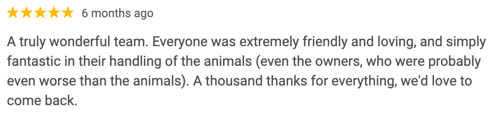 Thank you for your trust. We wish you and your animals happy holidays and a happy new year.